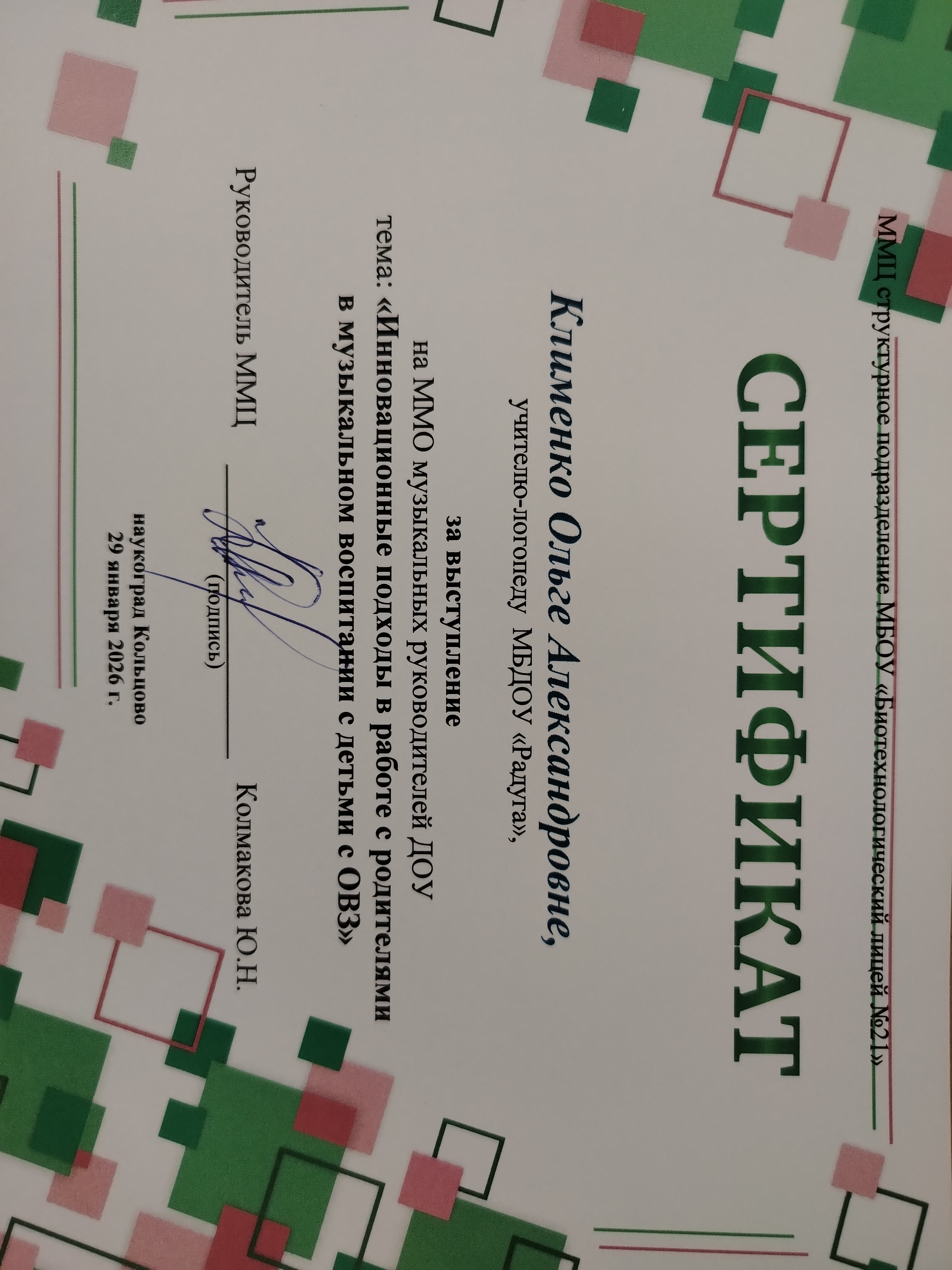 Муниципальный конкурс "Лучшие практики педагогических и руководящих работников образовательных организаций рабочего посёлка Кольцово", номинация "Индивидуальные образовательные траектории. Особенный ребенок - равные возможности"